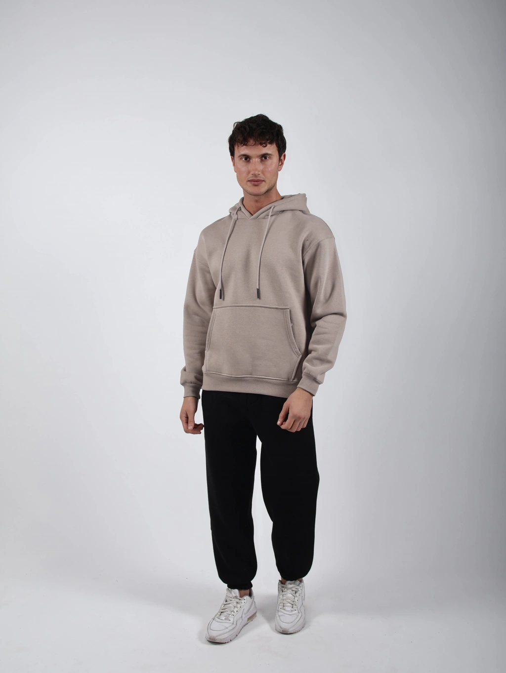 Basic Polarlı Kapşonlu Hoodie (Sweatshirt) Taş