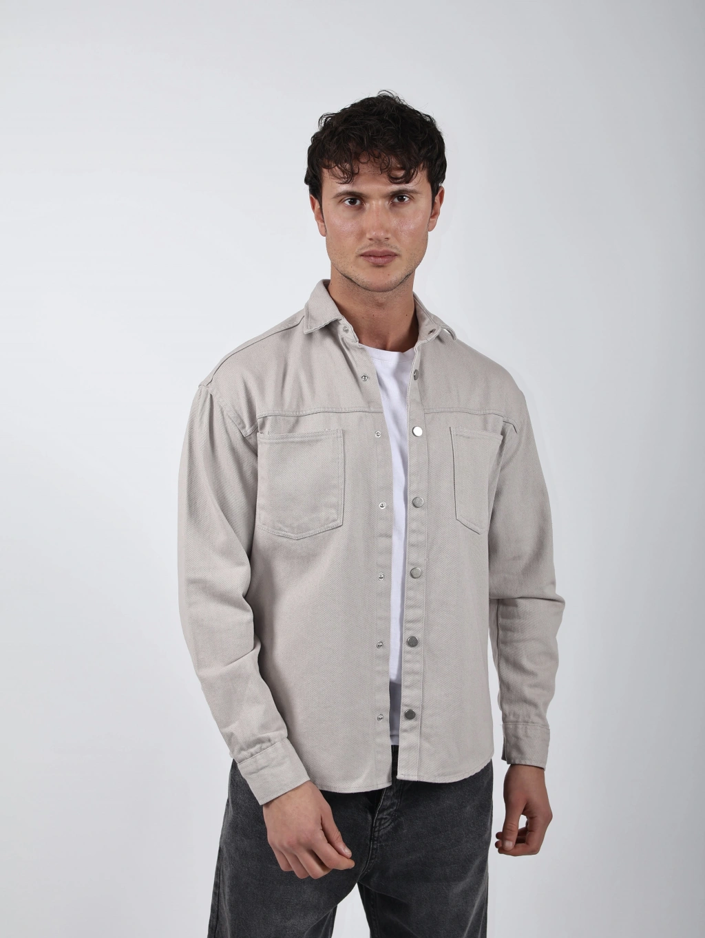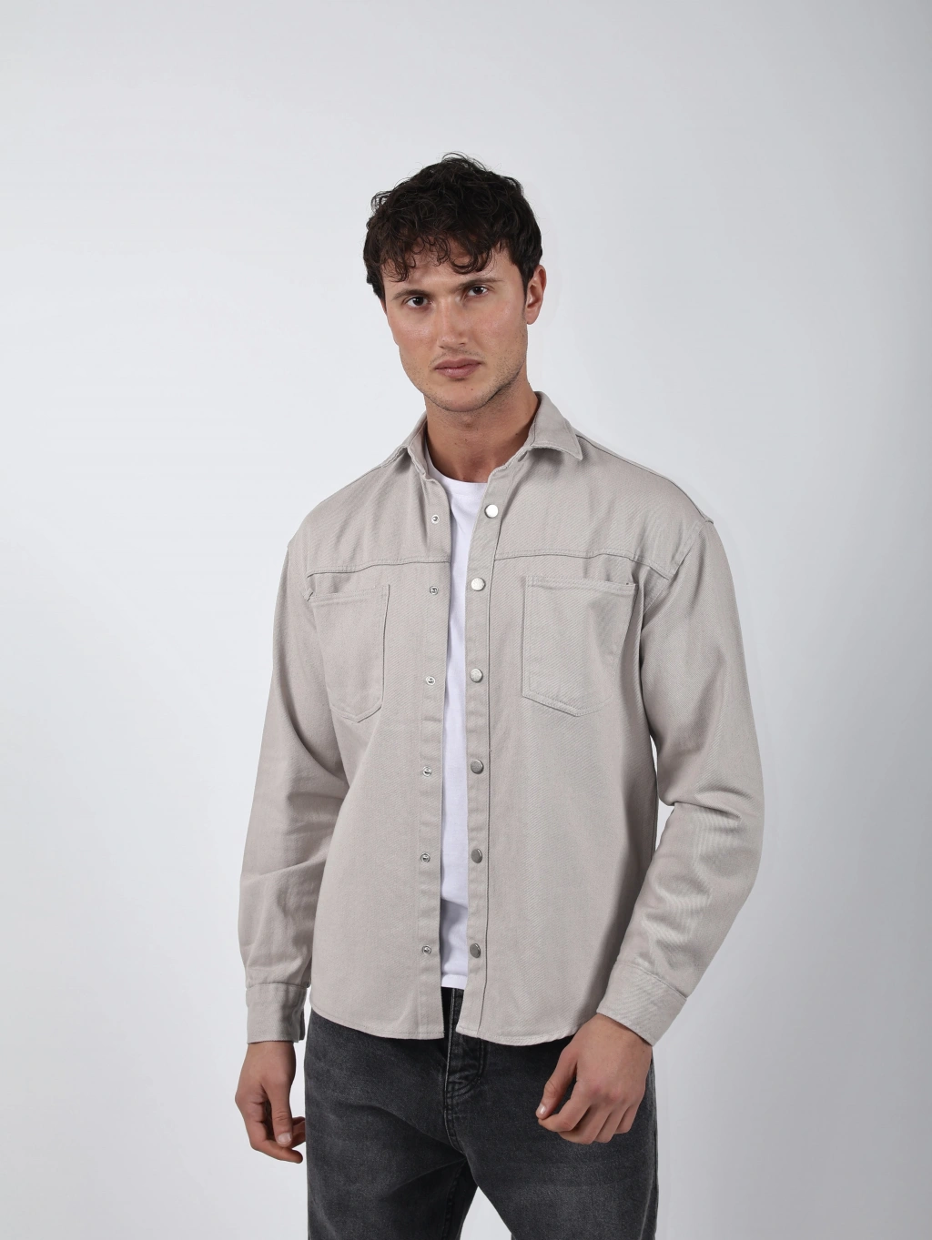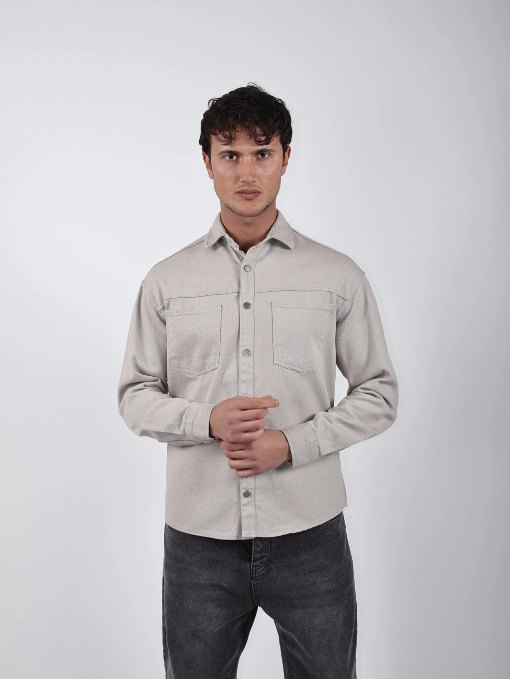 Modern ve sade tarzı bir araya getiren bu oversize fit pamuklu gömlek, günlük kombinlerde hem rahatlık hem de şıklık sunar. Yumuşak dokulu pamuk kumaşı sayesinde nefes alır ve gün boyu konfor sağlar. Düğme kapamalı ön kısmı ve göğüs cepleriyle detaylandırılmıştır. Basic tişörtlerle kolayca kombinlenebilir, hem açık hem kapalı şekilde kullanılabilir.