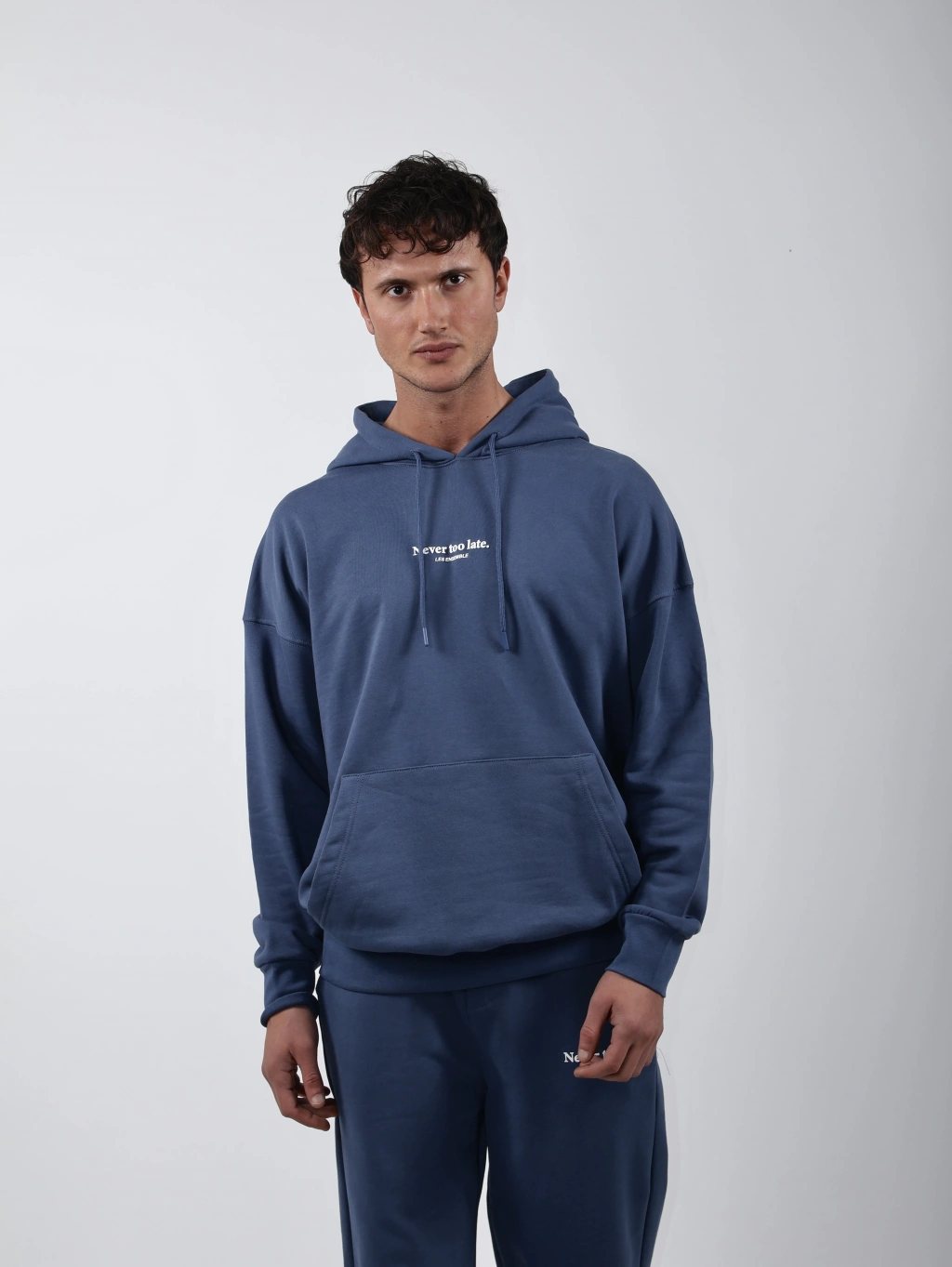 Never Too Late Kapşonlu Baggy Eşofman Takımı Mavi